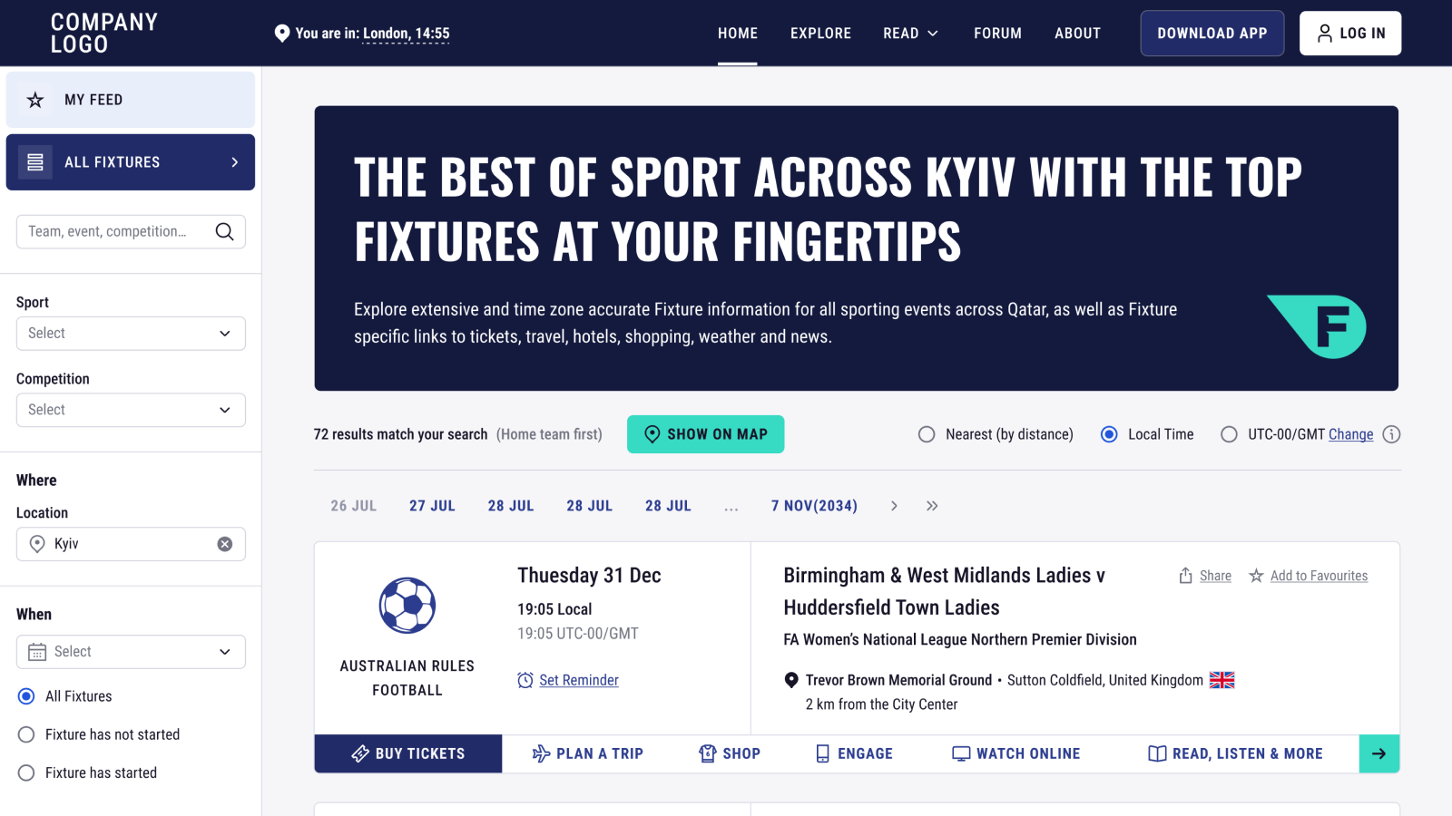 The result was a sleek, powerful platform that enables users to discover and track sports fixtures across leagues and sports worldwide. From Premier League football to NBA games and Formula 1 races, all data is unified in a single, easy-to-navigate calendar, available across devices and embeddable into partner platforms