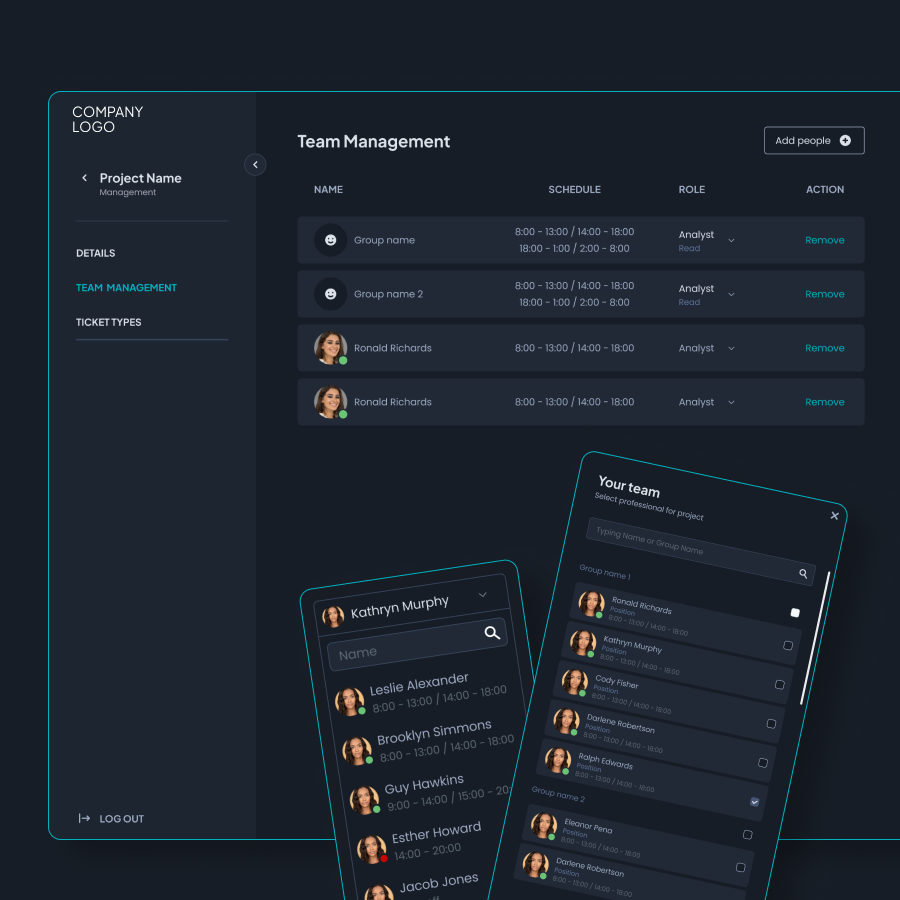 The internal support division required a centralized tool to streamline task processing and ticket management from both manual entries and third-party alarms. The tool needed to ensure real-time notifications, role-based user management, and intuitive task handling.
