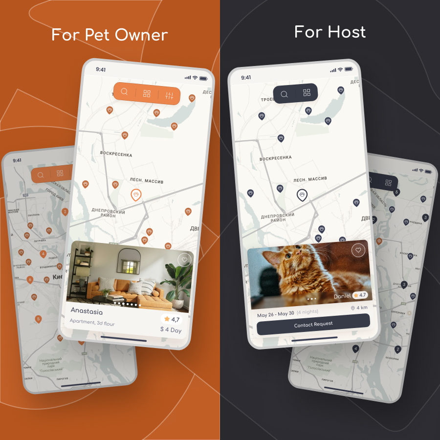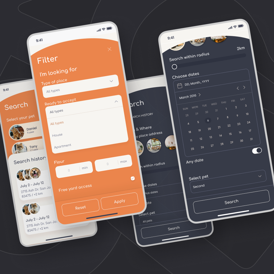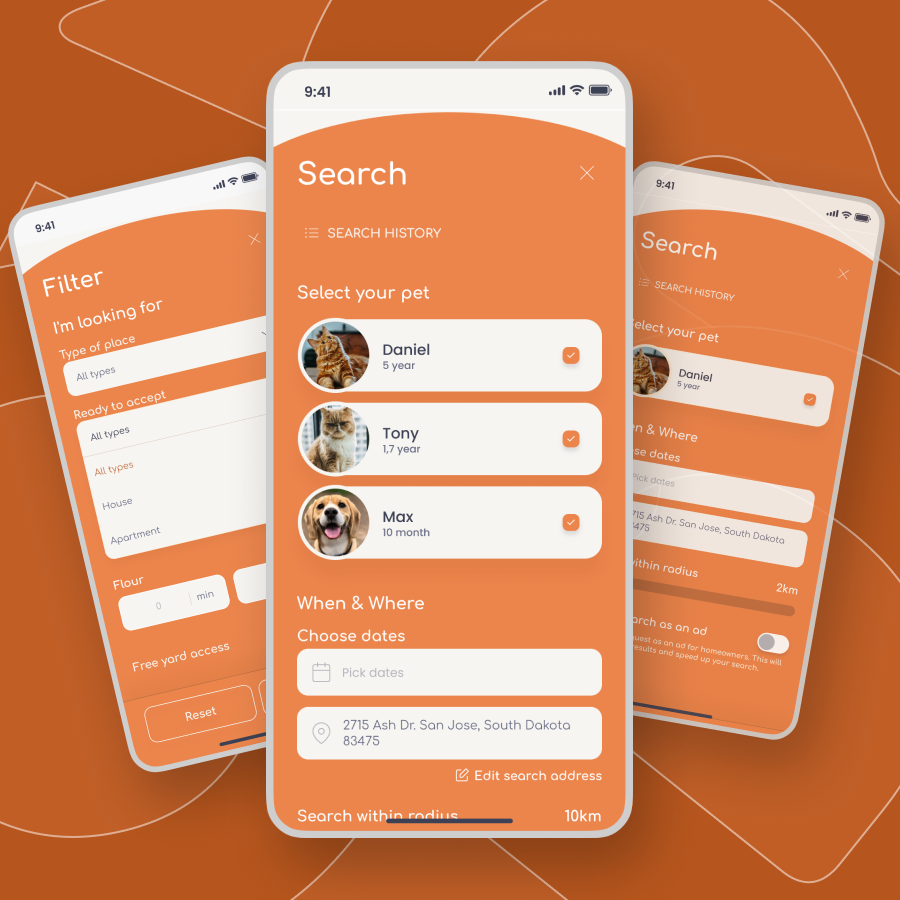 In just three months, we developed a comprehensive pet-sitting marketplace platform for our own product line. Designed to cater to both pet owners and hosts, the platform offers an easy way to find and manage pet-sitting services while traveling. Pet owners can add multiple pets and select hosts from different locations, making the process both flexible and efficient.